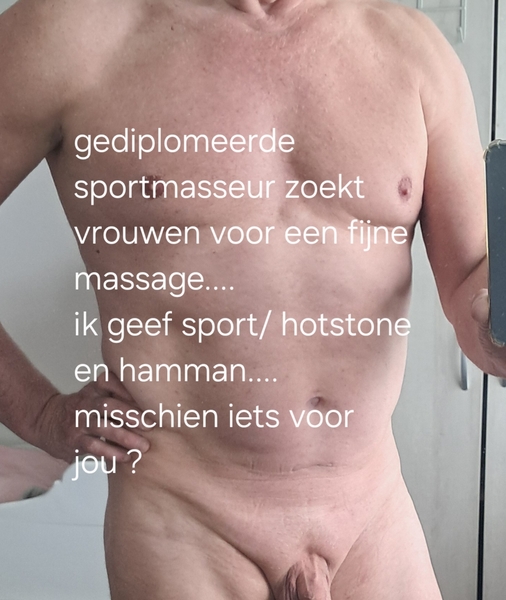 Gediplomeerde sportmasseur geeft de volgende massages: * sportmassage * hotstone * hamman Ik geef de massages in mijn professionele massageruimte. De massagestudio is voorzien: * elekrische massage tafel * infra rood verwarming * sfeervolle muziek en inrichting Tarief 60 min 40 - 90 min 60 -